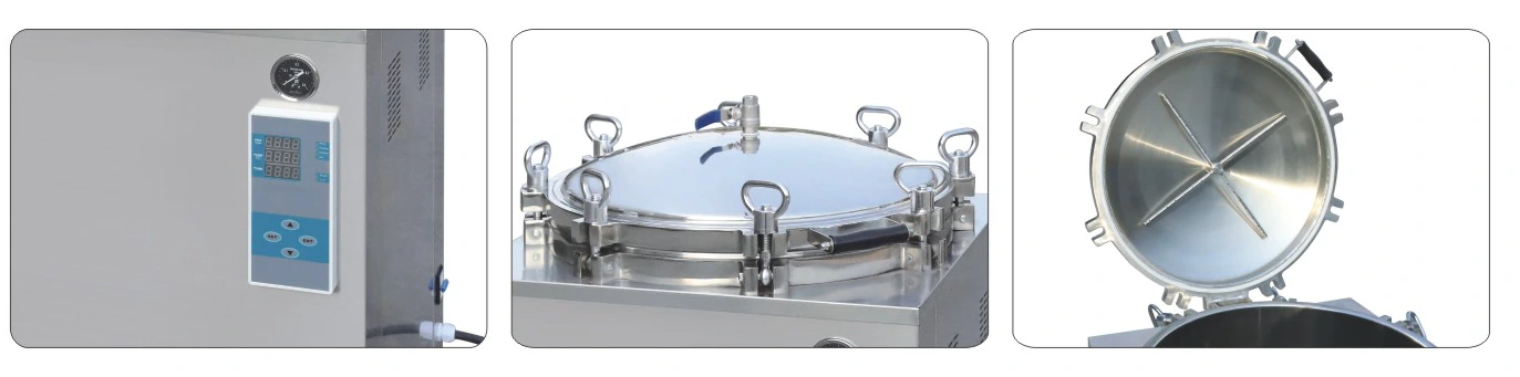 Is cineál de threalamh steiriliú rialaithe micrea-ríomhaire é an t-uathclave brú gcuntar i meánmhéid, líonann sé an t-uisce go díreach isteach sa seomra steiriliú le haghaidh téamh leictreach chun an gaile ardbhrú a ghiniúint mar an timthriall steiriliú atá ag teastáil, ansin téann an t-aonad ar aghaidh leis an steiriliú go dtí na hailt, fuaródh an teocht an uisce go tapa i 3 nóiméad ag an seomra steiriliú lasmuigh d'fhéadfadh an t-instealladh aer comhbhrúite a laghdú go dtí an timthriall críochnaithe. 30~40 ℃.Tá an t-aonad rialaithe ag an gclár, tá dhá rogha oibríochta a roghnú: fiuchphointe díghalrúcháin a bhfuil an teocht steiriliú níos ísle nó cothrom le 100 ℃.Tá an t-aonad le cosaint ró-ualú agus feidhm aláraim dordánaí tar éis steiriliú, éasca agus áisiúil a oibriú, sábháilte agus iontaofa.Tá sé infheidhme maidir le díghalrú agus steiriliú an bhia-earraí, tá sé oiriúnach go háirithe i bpacáistiú earraí agus táirgí tástála eile. institiúidí.